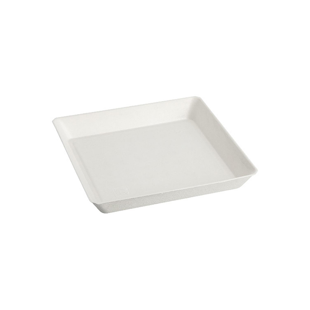 Assiette carrée 13 cm en pulpe de canne à sucre pensée pour les professionnels soucieux de l’environnement, combinant performance et écoresponsabilité.