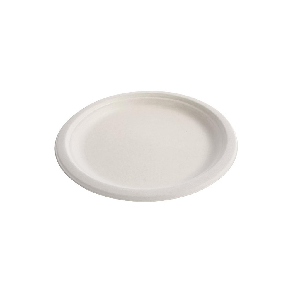 L’assiette ronde en pulpe blanche Ø 229 mm est une vaisselle jetable professionnelle écoresponsable, conçue à partir de pulpe de canne à sucre, une matière biosourcée, biodégradable et compostable selon la norme OK COMPOST HOME (EN 13432).
