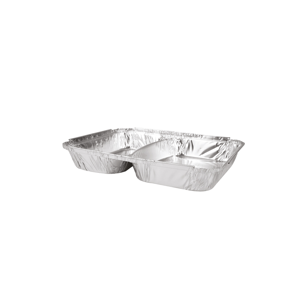 La barquette aluminium 2 compartiments à bords roulés (227 x 177 x 30 mm) est conçue pour les professionnels de la restauration collective, cuisines centrales et cantines scolaires. Elle permet de séparer efficacement les préparations tout en garantissant une cuisson et une remise en température optimales.