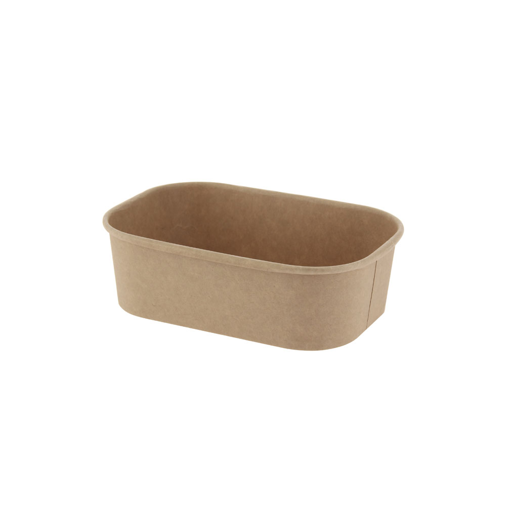 La barquette ovale en carton kraft brun avec revêtement PE de 750 ml (165 x 115 x 50 mm) est conçue pour les professionnels de la restauration collective, cantines et cuisines centrales. Elle permet de présenter et transporter facilement plats complets, salades ou préparations chaudes et froides, tout en garantissant un service pratique et hygiénique.