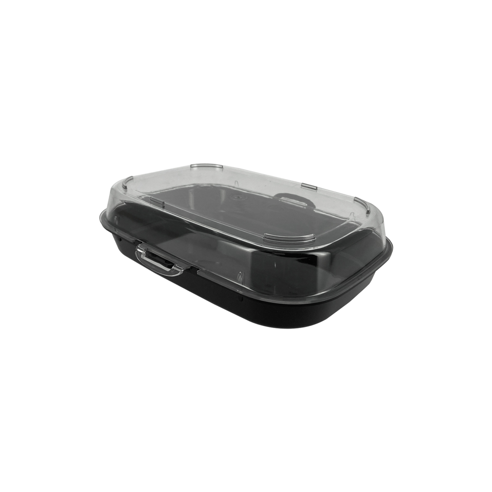 Composée d’une base en PP noir et d’un couvercle transparent en Tritan, cette barquette permet une visibilité optimale des préparations, tout en assurant une bonne protection des aliments. Le contraste entre la base noire et le couvercle transparent met en valeur les compositions asiatiques en vitrine réfrigérée ou comptoir de vente.