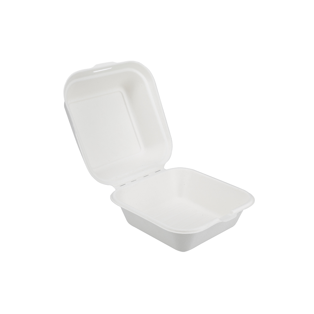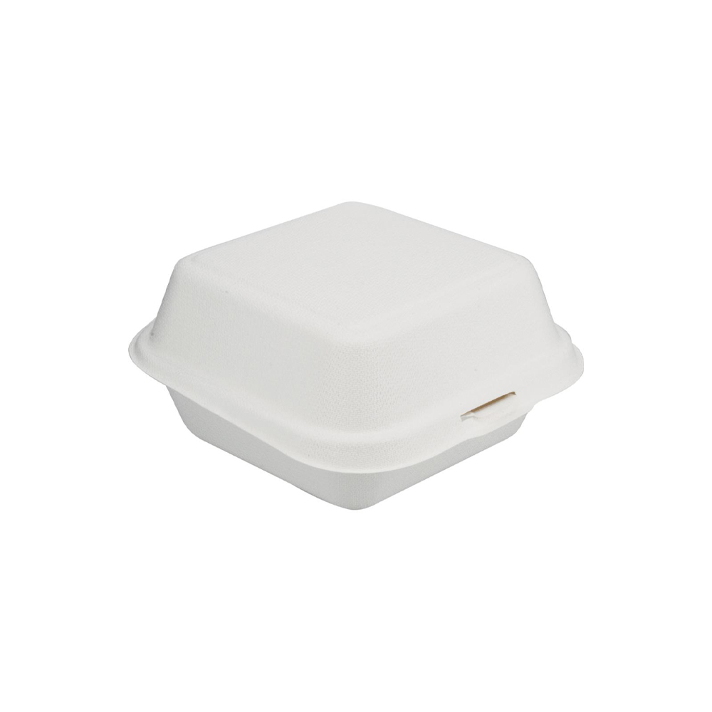 La Coquille Hamburger en pulpe de canne à sucre (140 x 140 x 90 mm) est conçue pour transporter et présenter burgers et sandwichs à emporter. Son format pratique garantit un maintien optimal des aliments tout en facilitant le service.