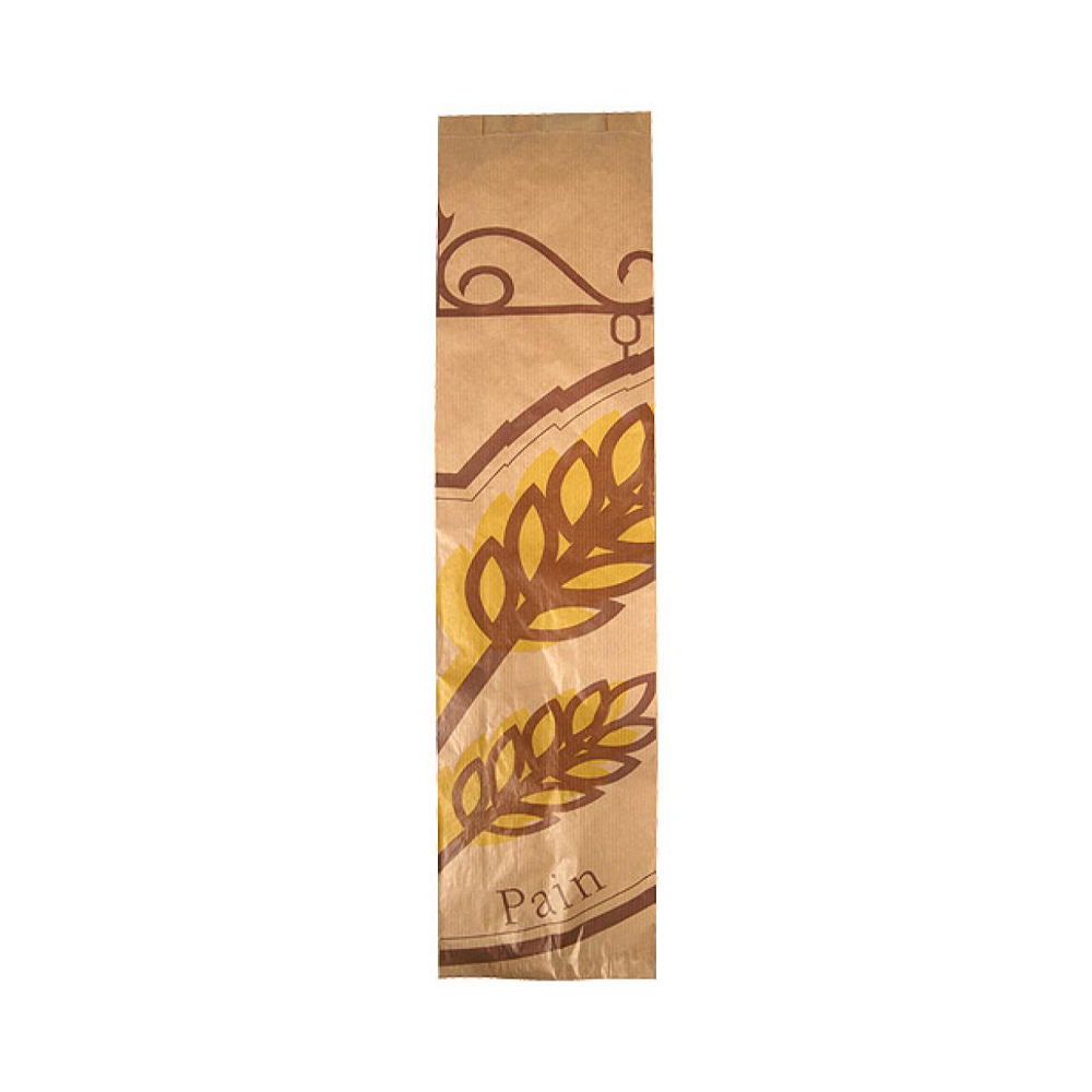 Sac à pain 2 baguettes en papier kraft brun décor passe-partout 140 x 60 x 560 mm, lot de 1000. Robuste et pratique, parfait pour transporter deux baguettes en toute sécurité.